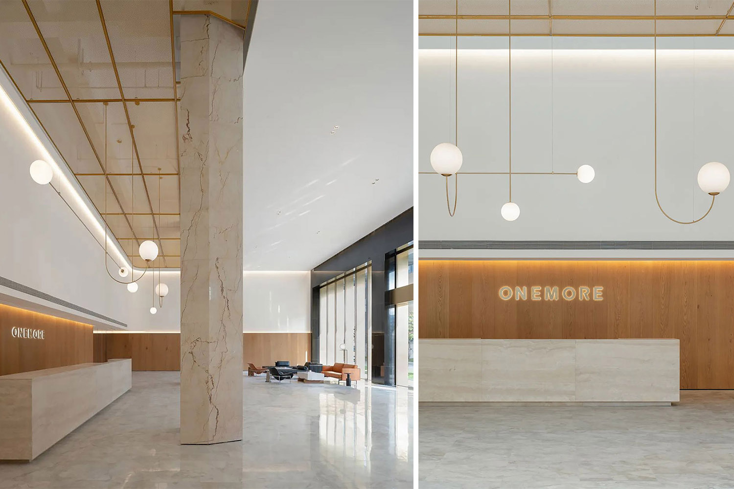 ONEMORE的總部辦公空間,不僅從空間營造上找到了能夠適應當下工作氛圍的方法,也為研究“聚集性空間的消解與轉化”提供了一種前瞻性的思考。將空間設計的重心放在了“尋找辦公歸屬感”和“多互動的環保有氧空間上的設計理念上”,為品牌打造一個能激發更大協作意識和創造力的空間。